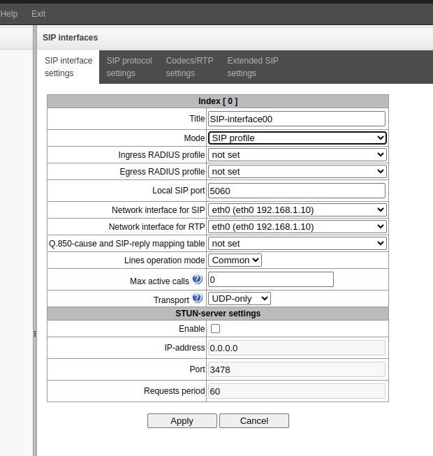 5. Select “Network interface for SIP” and “Network interface for RTP”.
