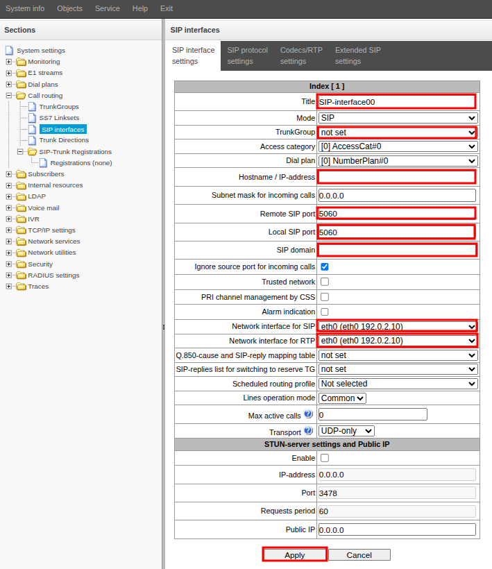 - Go to the "Call routing" → "SIP interfaces" menu.