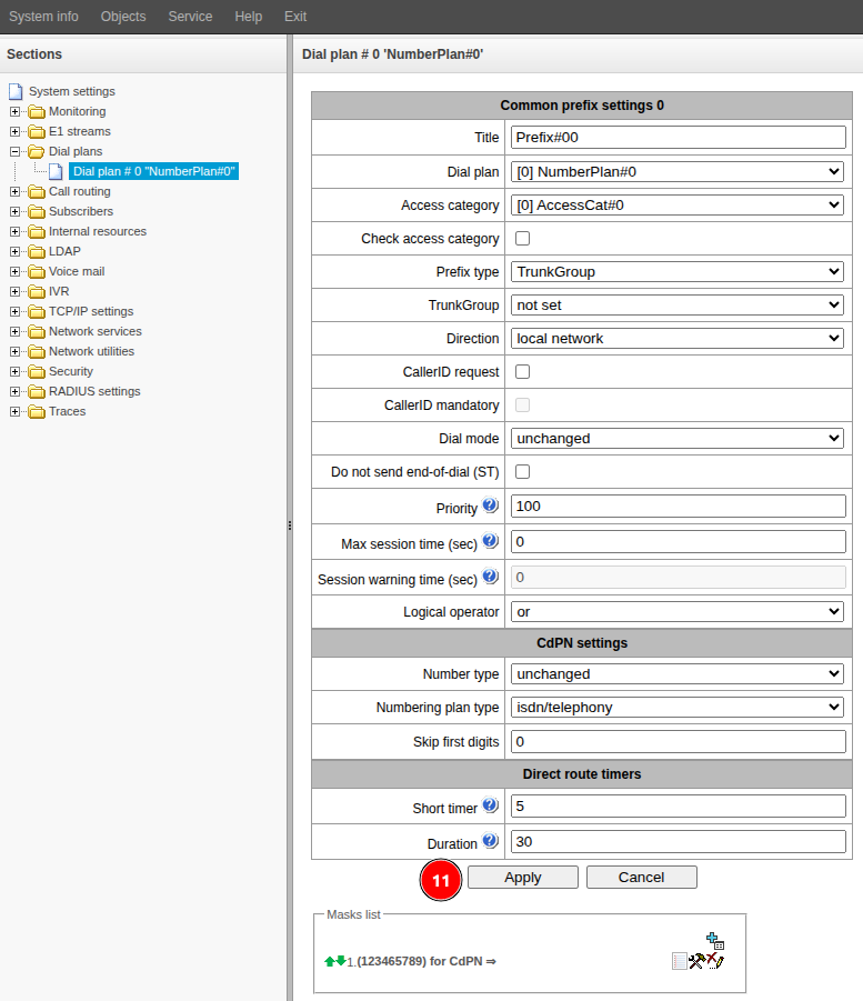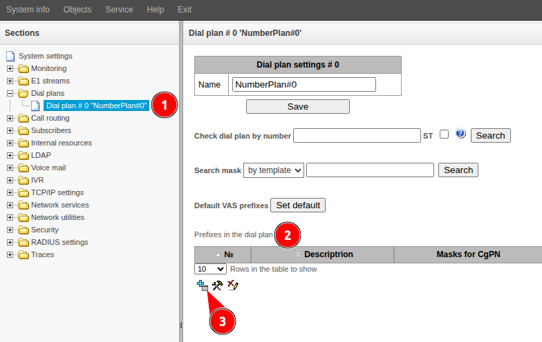 1. Go to the "Dial Plans" menu → "Dial plan #0".