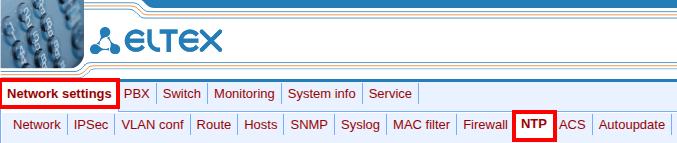- Go to the TAU web interface, select the “Network settings” → “NTP” menu.