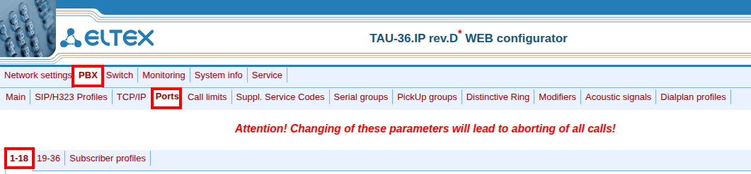 - In the TAU web interface, go to the “PBX” → “Ports” menu.