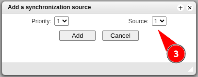 - If multiple E1 streams from higher-level stations are used, you can add multiple synchronization sources by selecting a priority for each one and repeating steps 2 through 4. It is not recommended to specify the same priority for two or more streams.