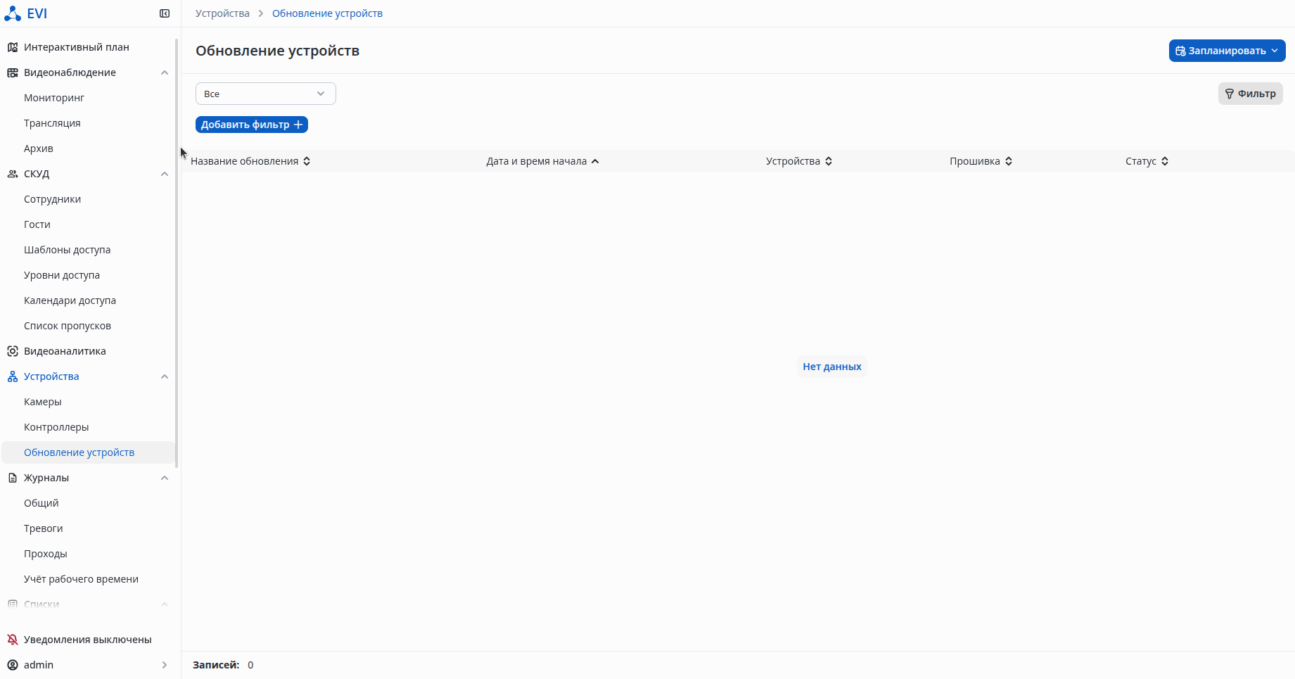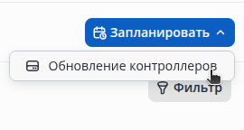 Нажмите на кнопку Запланировать и выберите в списке Обновление контроллеров.