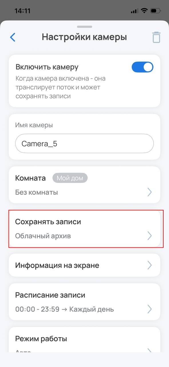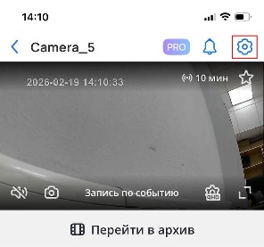Зайти в настройки камеры (выбрать в приложении нужную камеру и нажать на значок шестеренки)