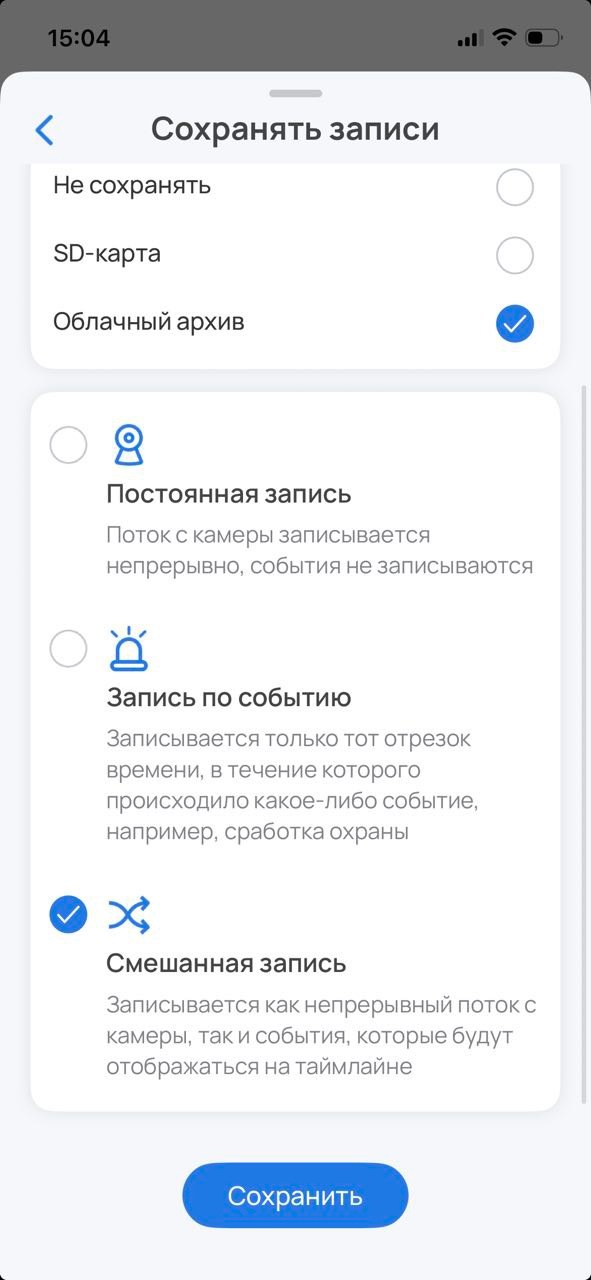В режиме облака запись ведется 7 дней, события при этом не помечаются.