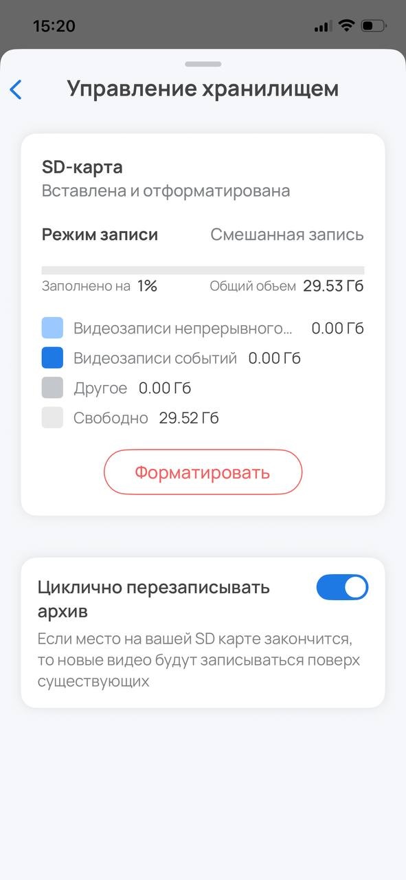 где можно отформатировать SD-карту и выключить\включить возможность цикличной записи