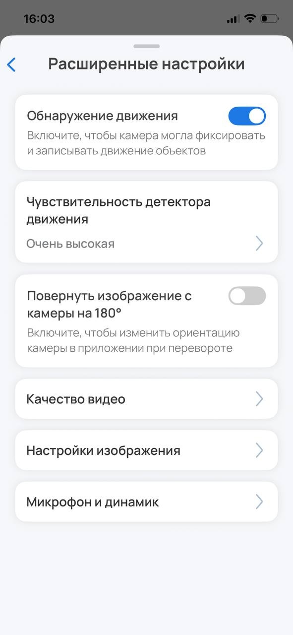 Внимание! Для работы обнаружения по движению нужно в настройках камеры перейти на вкладку "Расширенные настройки" и включить настройку "Обнаружение движения"