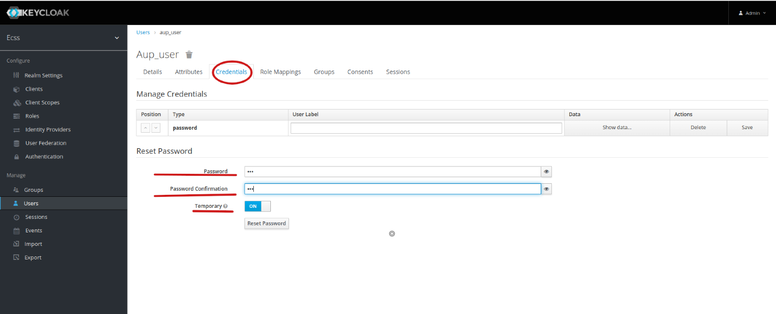 Войдите в раздел «Credentials» и в пункте «Reset Passwor» введите новый пароль: