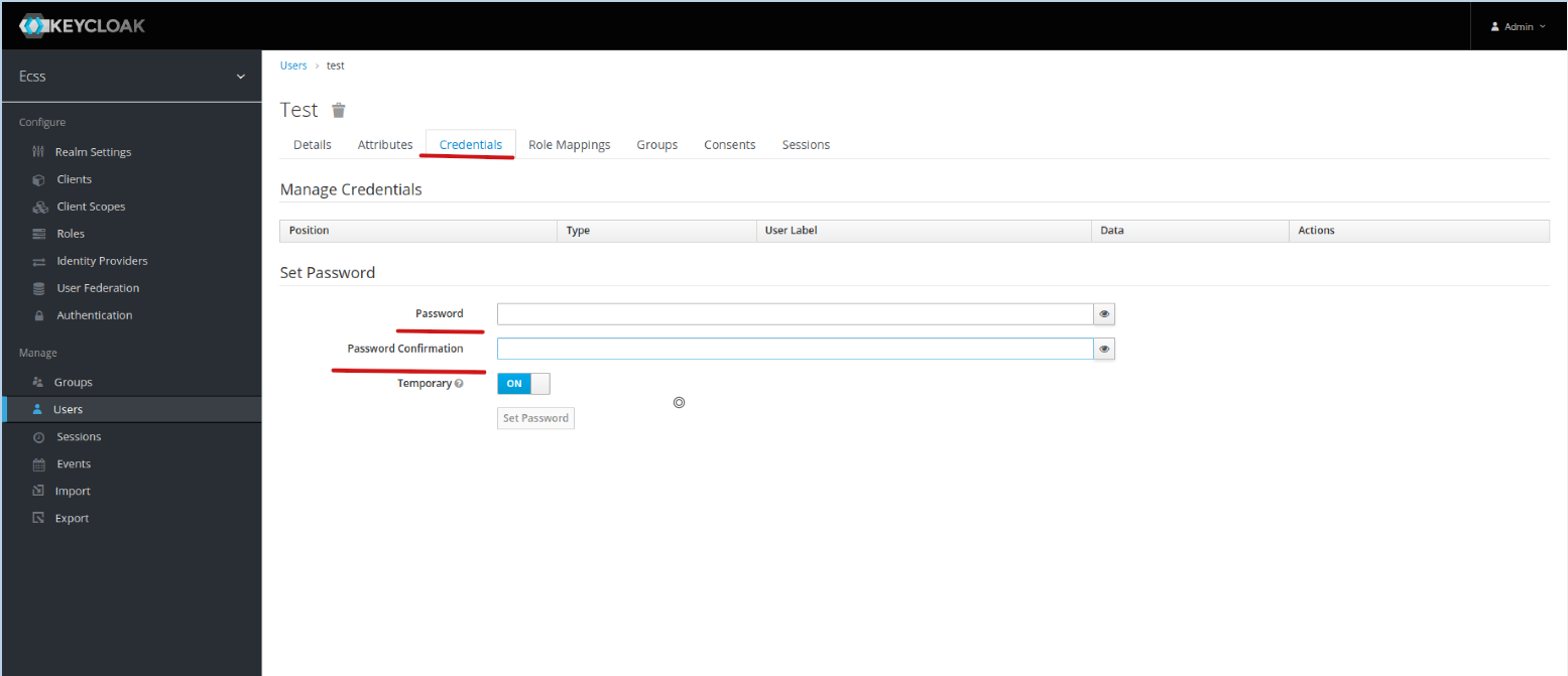 После сохранения появятся дополнительные пункты. Выберите пункт «Credentials» и введите пароль для пользователя