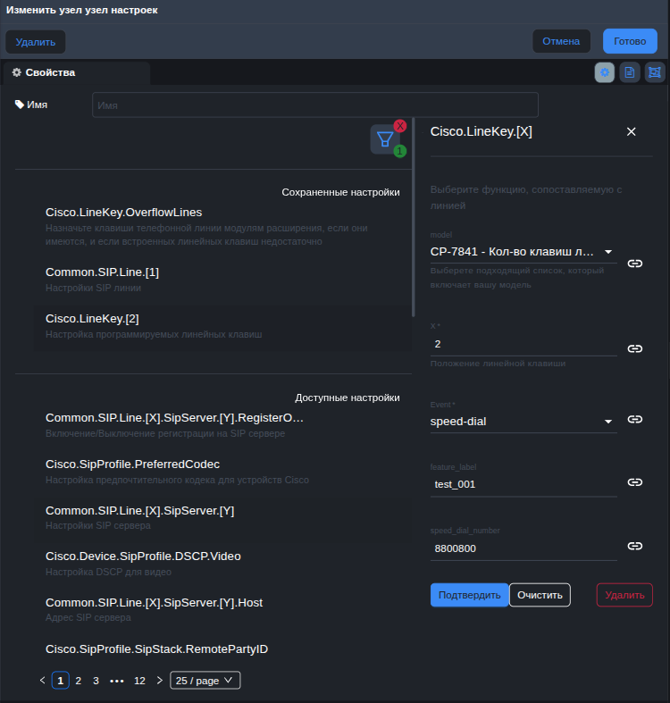 Настройка линейных клавиш осуществляется через параметр Cisco.LineKey.[X] в графе конфигуратора