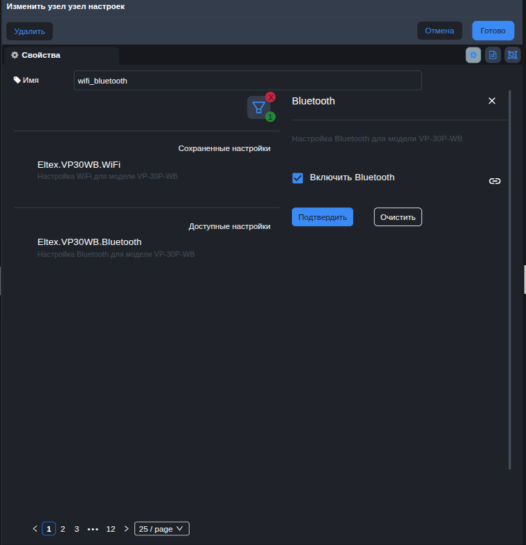 Настройка Bluetooth на телефоне задается через Eltex.VP30WB.Bluetooth в графе конфигуратора