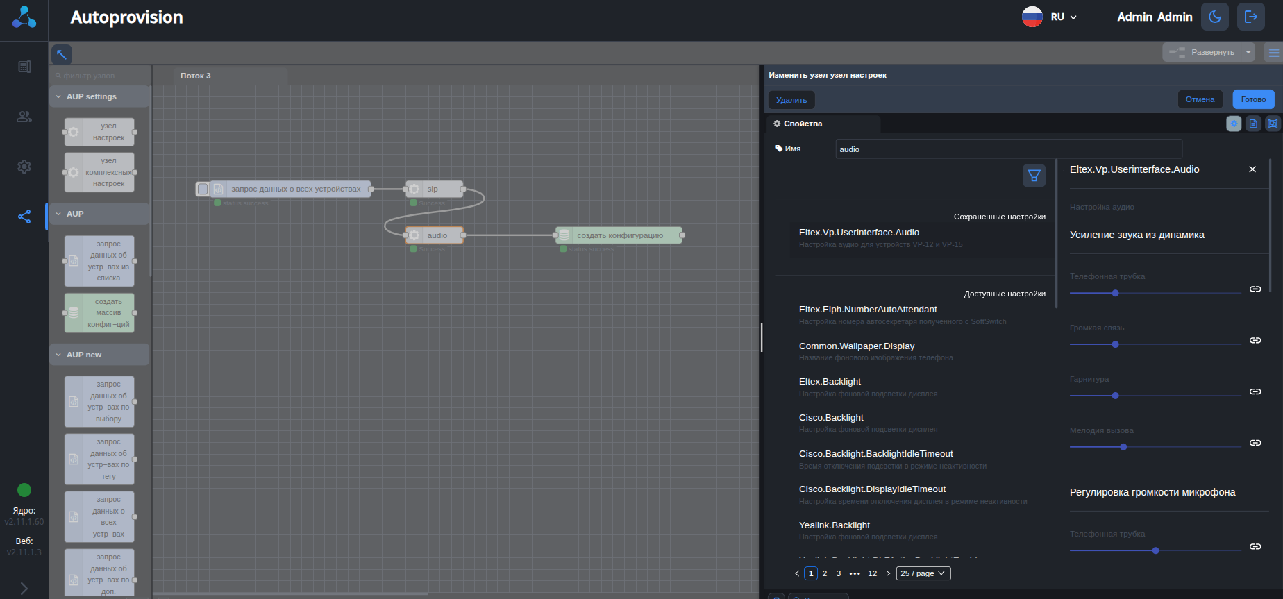 - Выберите параметр Eltex.Vp.Userinterface.Audio в узле настроек.