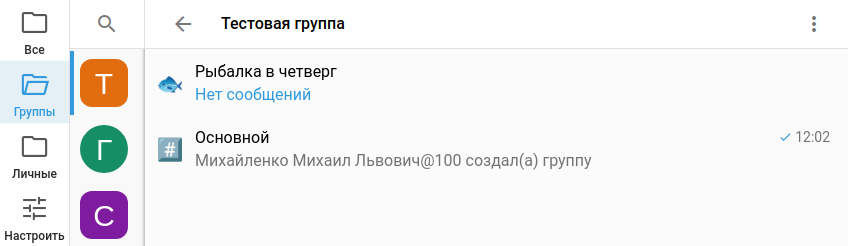 Отображение группового чата: