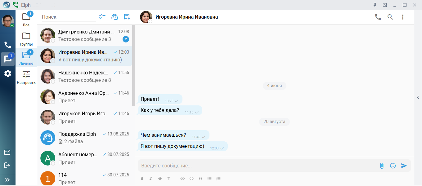 - Личные — персональные комнаты с другими пользователями.
