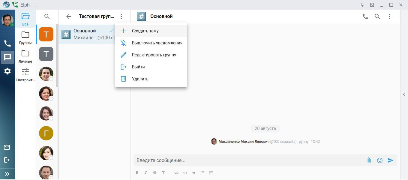 После этого исходный чат группы будет перенесён в тему «Основной», а в контекстном меню появится возможность создать новую тему.