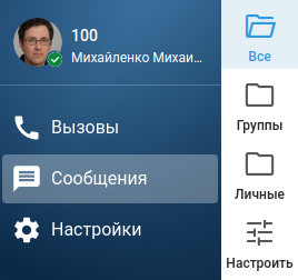 Количество непрочитанных сообщений отображается по следующему принципу: во вкладке Сообщения, расположенной внизу на панели слева, отображается общее количество уникальных комнат или групп, в которых у пользователя есть непрочитанные сообщения. Тот же принцип действует для отображения счётчика непрочитанных сообщений в панели с папками. Если перейти в конкретную папку, то отобразится общее количество непрочитанных сообщений в конкретной группе или личном сообщении.