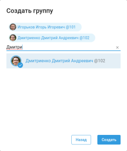 С помощью поиска добавьте участников и нажмите кнопку Создать.