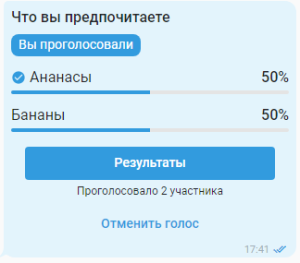 Информация в чате по результатам опроса: