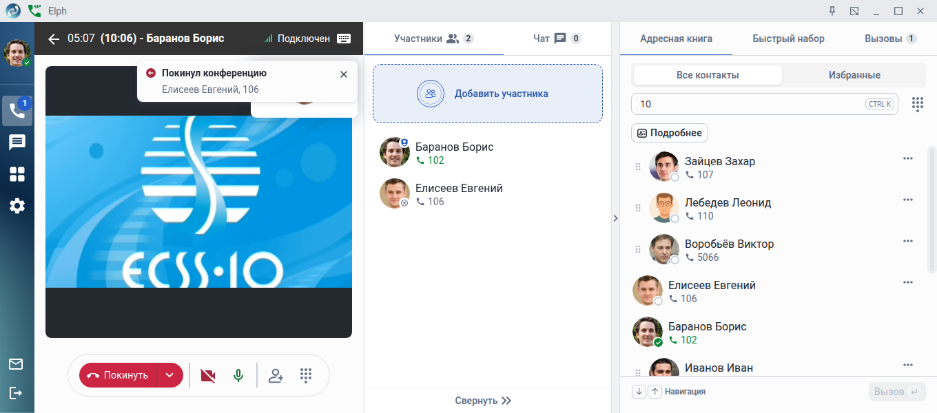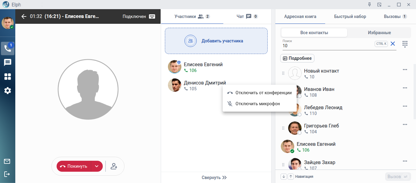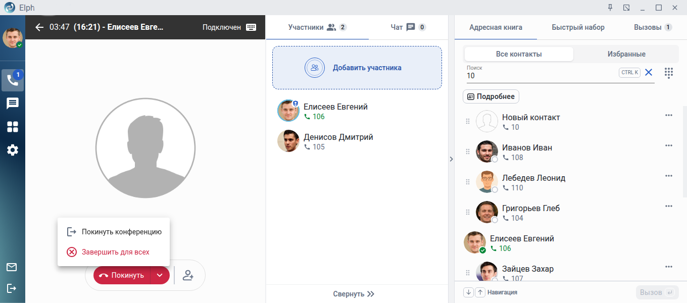 Администратор конференции и на этом этапе может добавлять участников или отключать присоединившихся от конференции.