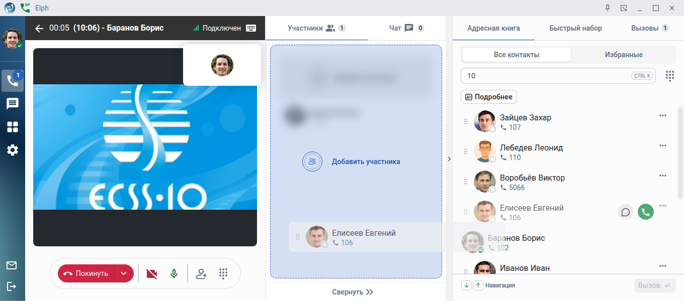 Переместите интересующий контакт из Адресной книги в центральную область приложения (вкладка Вызовы) «Начать конференцию».