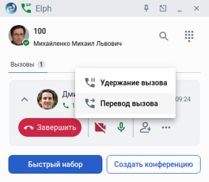 Окончательный перевод сопровождаемого вызова (мини-карточка звонка)