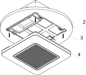 1 – металлический кронштейн; 2 – панель армстронг; 3 – пластиковый кронштейн; 4 – устройство.