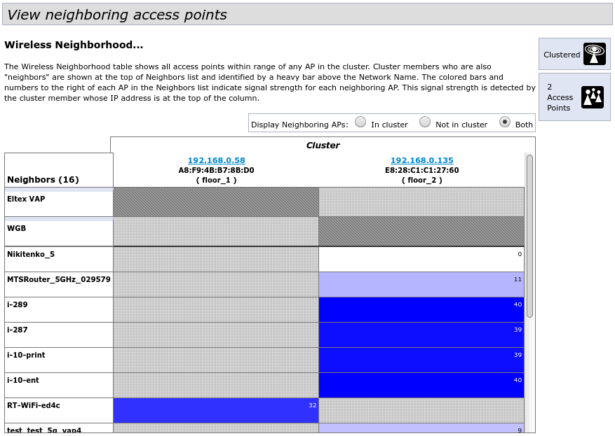 - Автоматическая синхронизация конфигураций точек доступа в кластере;