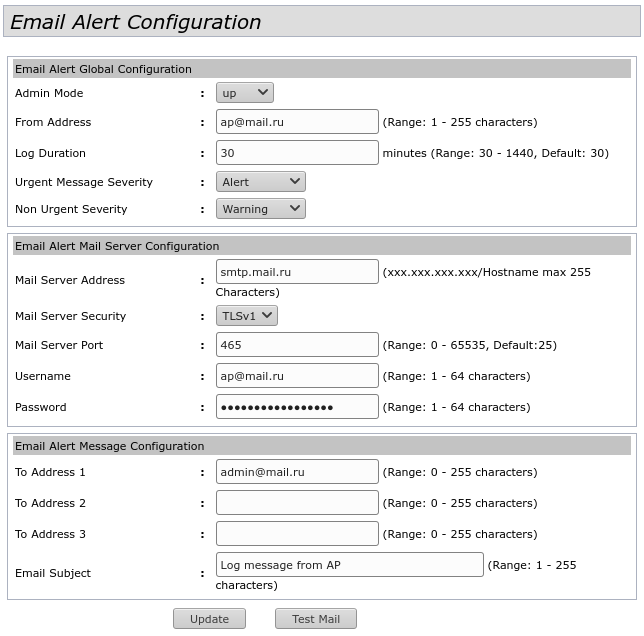 | Безопасность | централизованная авторизация через RADIUS-сервер (802.1X WPA/WPA2 Enterprise); 64/128/152-битное WEP-шифрование данных, WPA/WPA2; поддержка Captive Portal; e-mail-информирование о системных событиях |