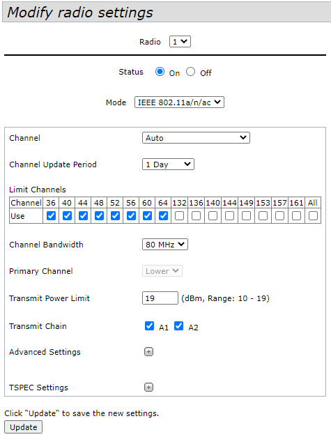 | Рабочие каналы | 802.11b/g/n: 1-13 (2412–2472 МГц) 802.11a/ac: 36-64 (5170–5330 МГц) 100-144 (5490–5730 МГц) 149-165 (5735–5835 МГц) |