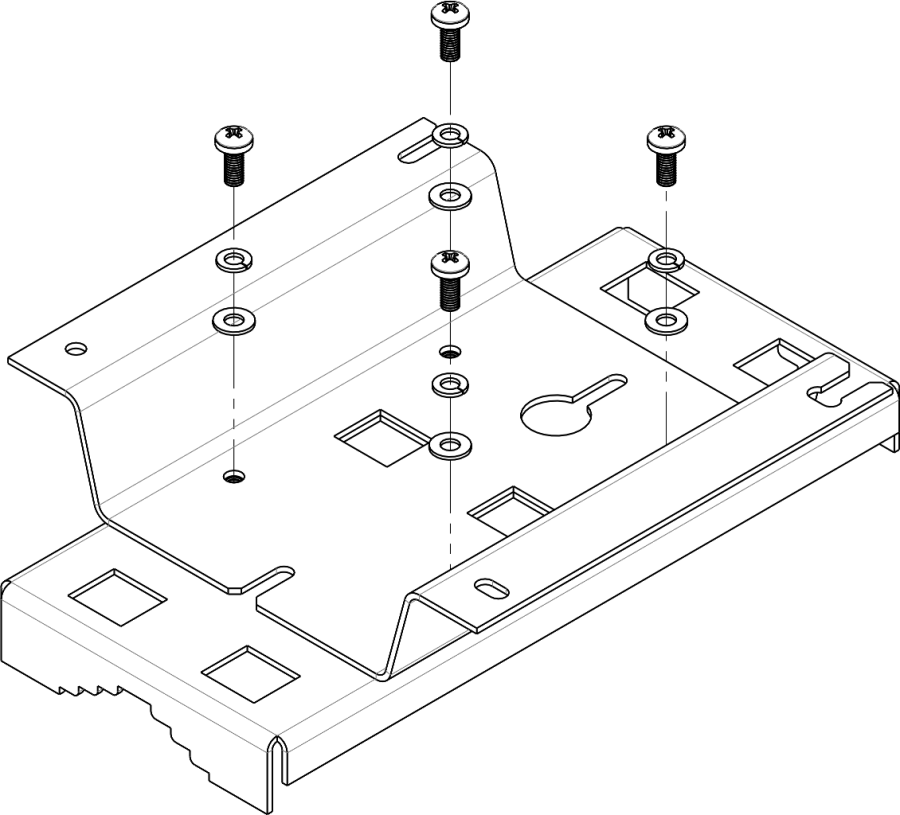 b. В верхние крепежные отверстия на корпусе WOP-2ac установите шайбы и винты DIN7985 M6. Винты не нужно закручивать до конца, оставьте зазор минимум 3 мм, рисунок 4.