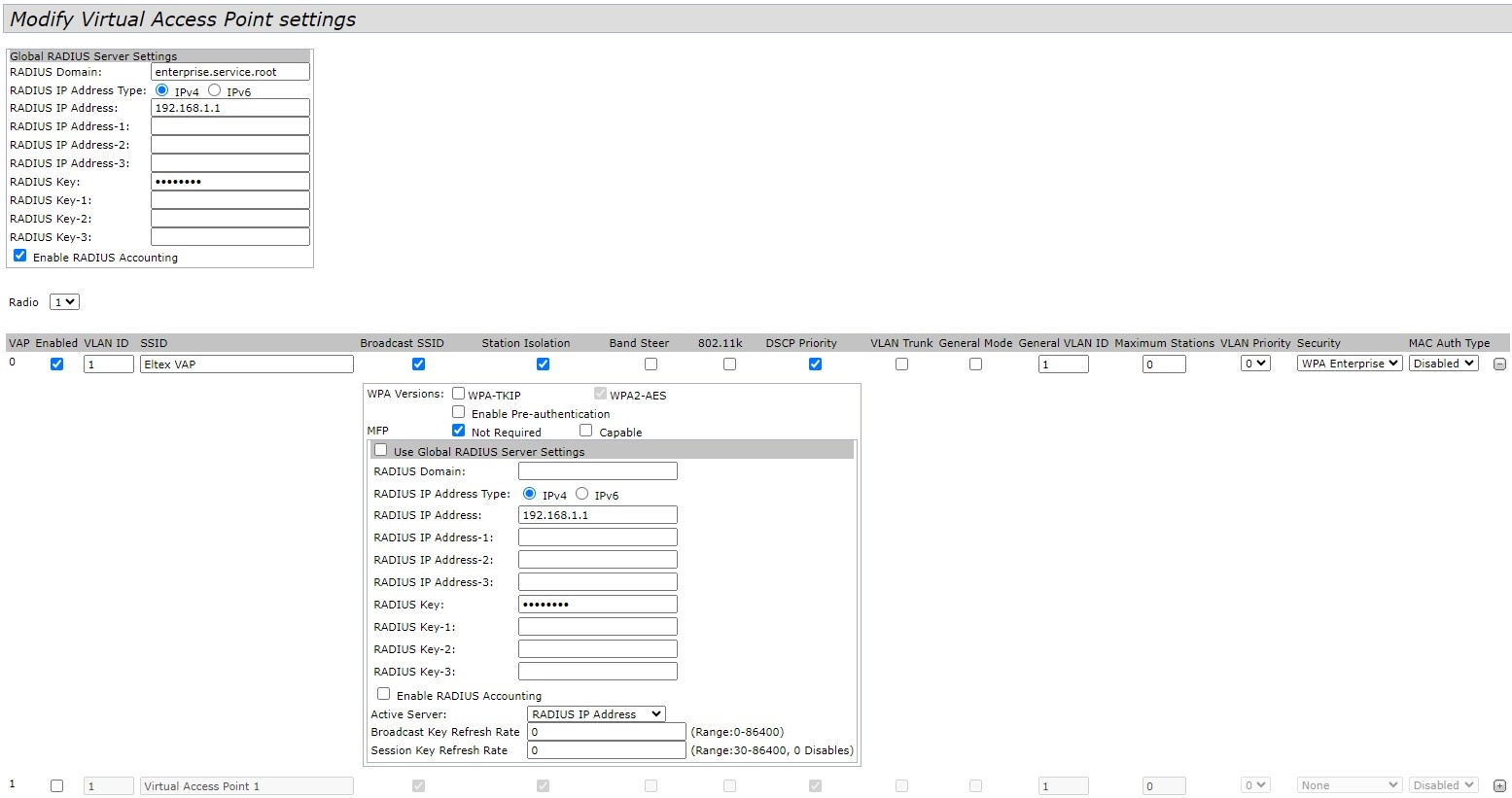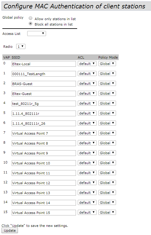 - изменение параметров WMM для каждого радиоинтерфейса;