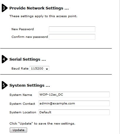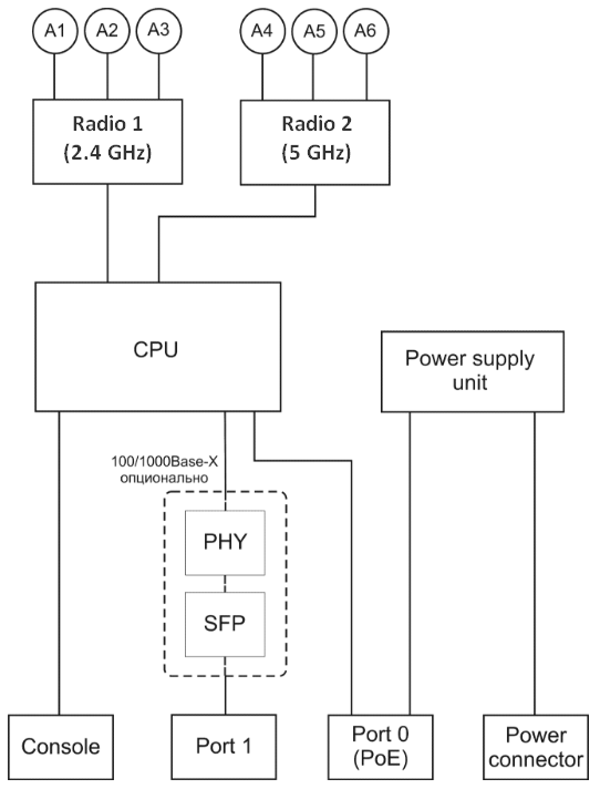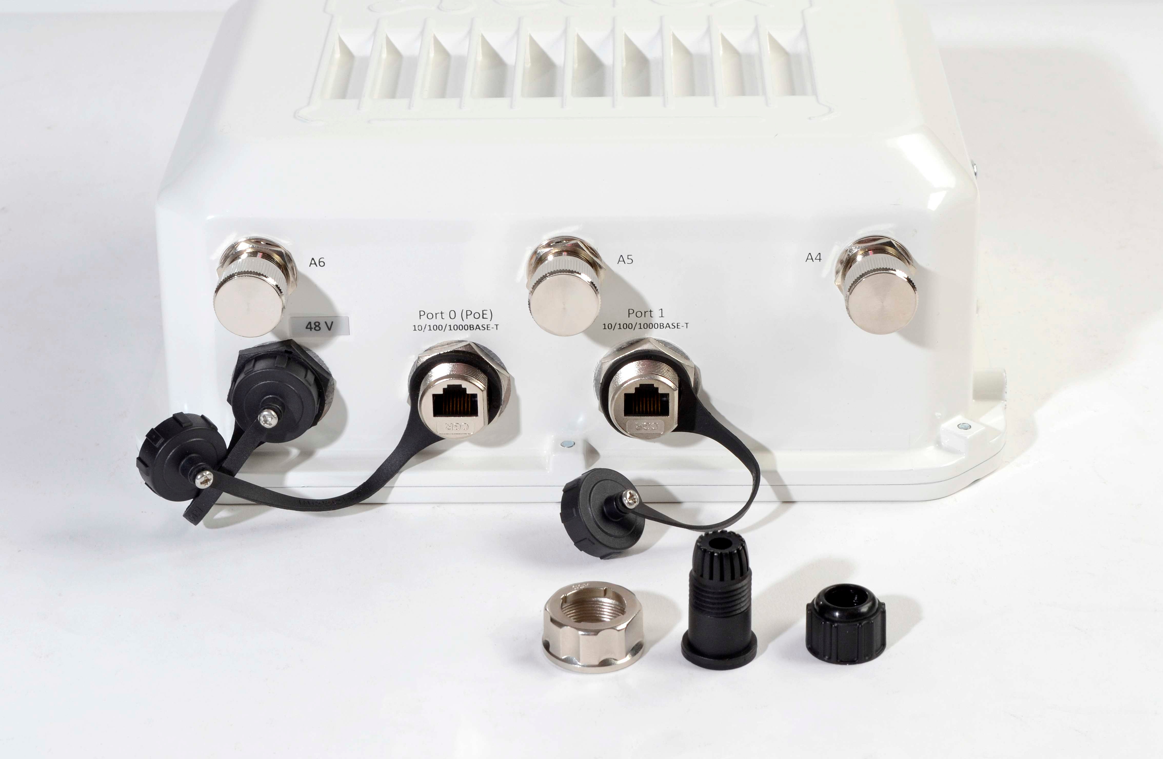 - 6 разъемов N – type (female), для подключения внешних антенн (всенаправленные, секторные, узконаправленные). Выбор модели зависит от использования точки доступа – для дальнобойных беспроводных мостов необходимо выбирать узконаправленные, а для базовых станций используются секторные либо всенаправленные антенны;
