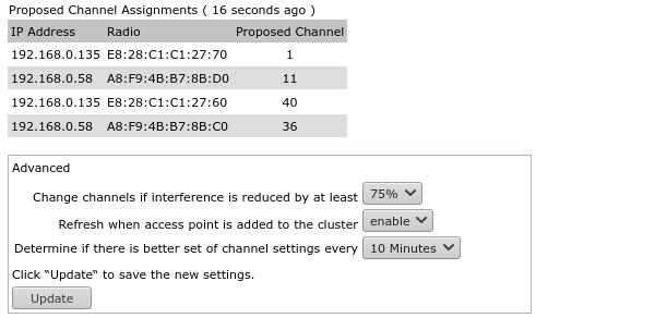 - автоматическое распределение уровня излучаемой мощности между точками доступа.