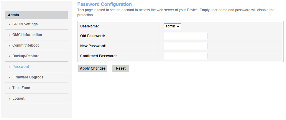 Для принятия изменений необходимо нажать кнопку «Apply Changes», для отмены — кнопку «Reset».