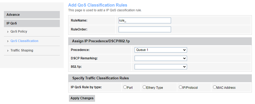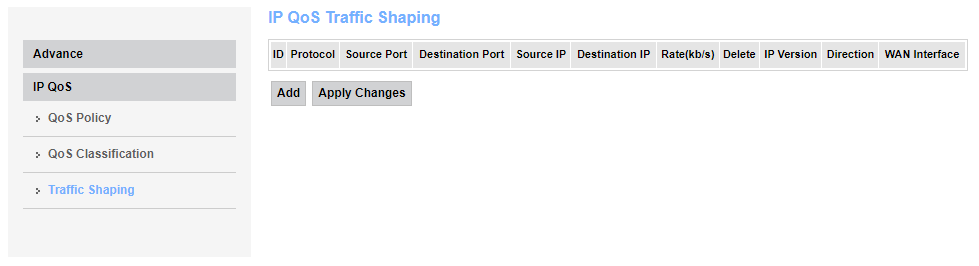 В данном разделе можно указать ограничения трафика по определенным правилам.