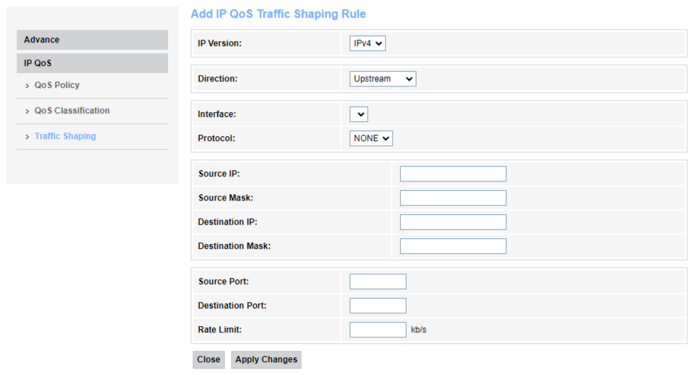- Rate Limit (kb/s) — ограничение по скорости, кбит/с.
