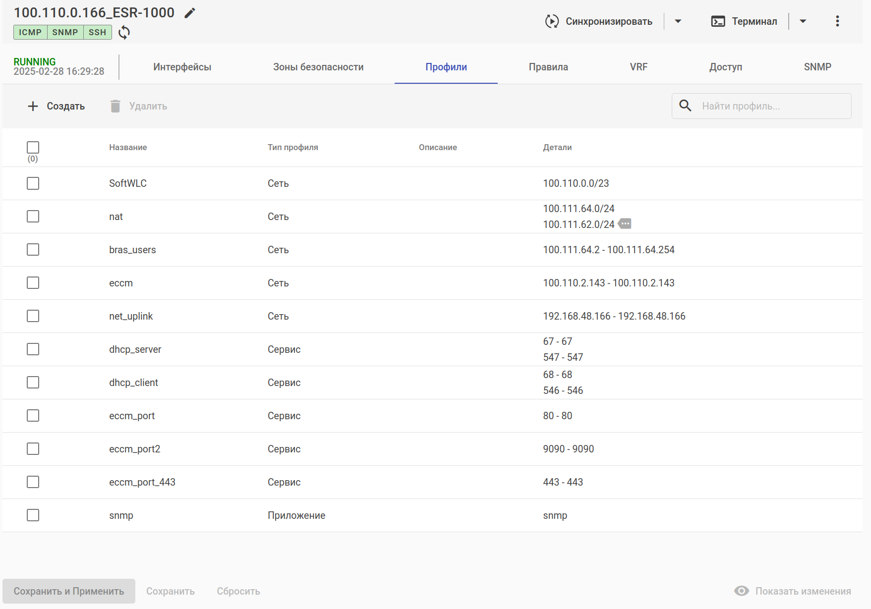 - Название — название профиля доступа к OID (заблокировано при редактировании). Значение должно начинаться с латинских букв (A-Z,a-z) и может содержать цифры и символы '_', '-'.