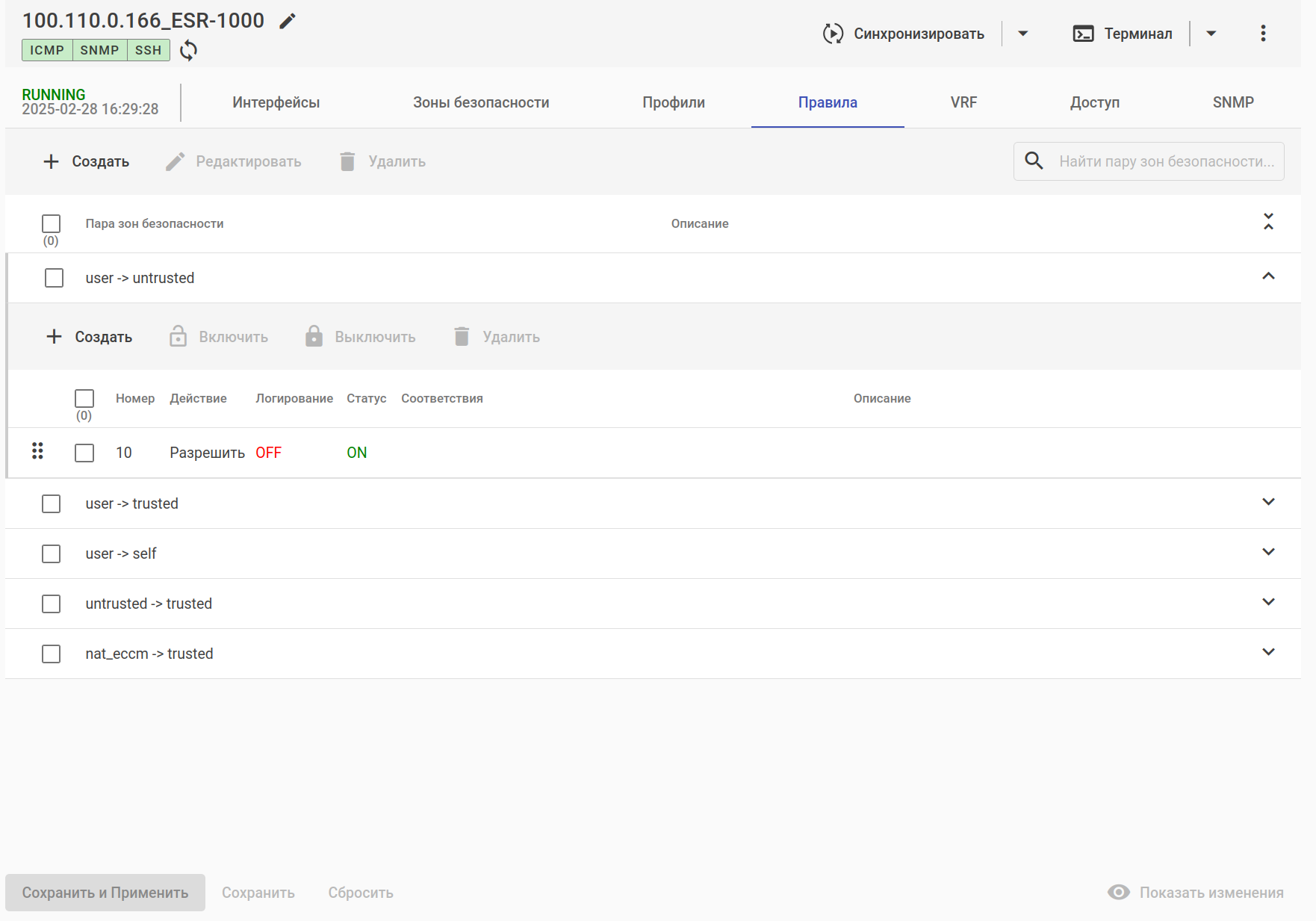 - При изменении настроек группы интерфейсов: Значение по умолчанию — Отключено.