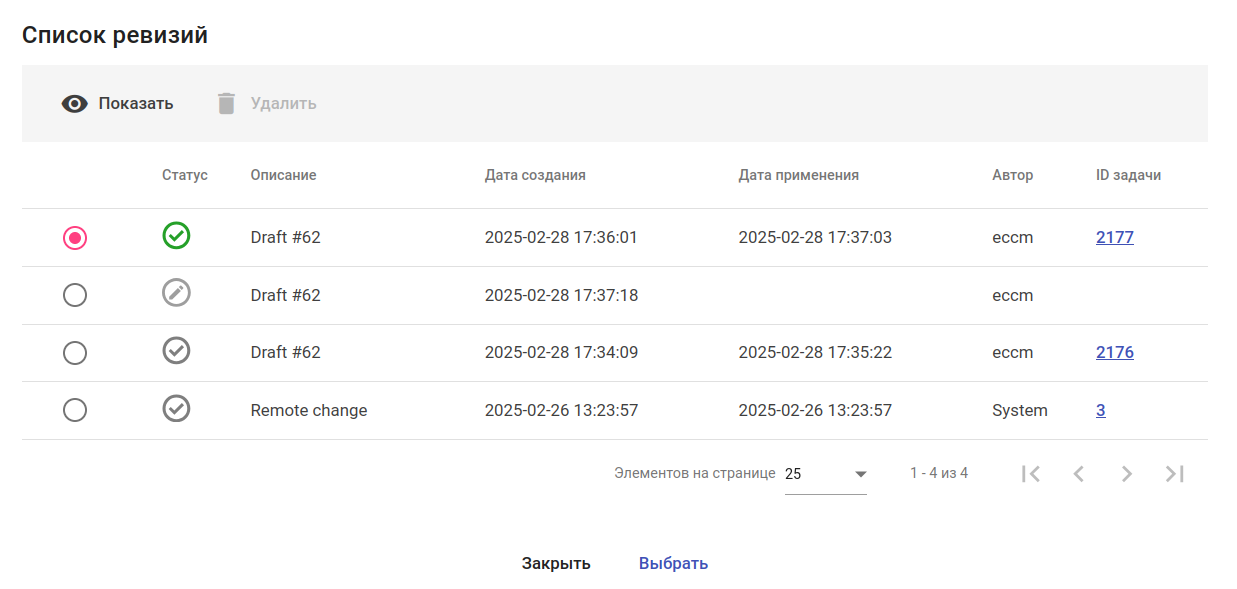Для просмотра журнала настроек нажмите кнопку "Журнал настроек" : откроется модальное окно "Журнал настроек":