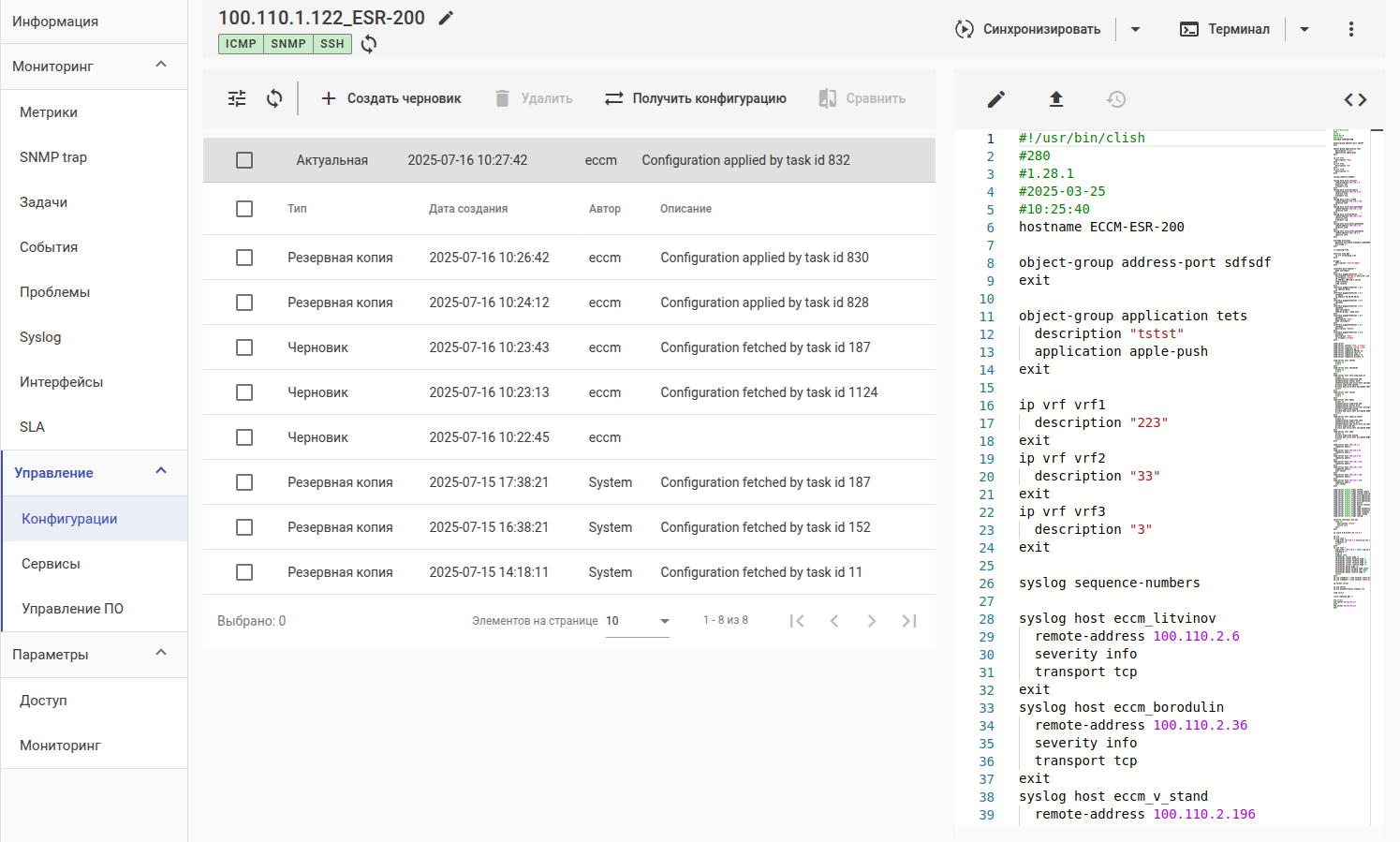 Если в поле "VRF" было установлено значение, то интерфейс для отправки SNMP trap также должен входить в указанный VRF.
