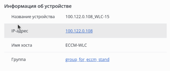 При нажатии на ссылку из колонки "Группа" будет открыта вкладка "Сеть" → "Страница группы" → "Устройства" соответствующей группы.