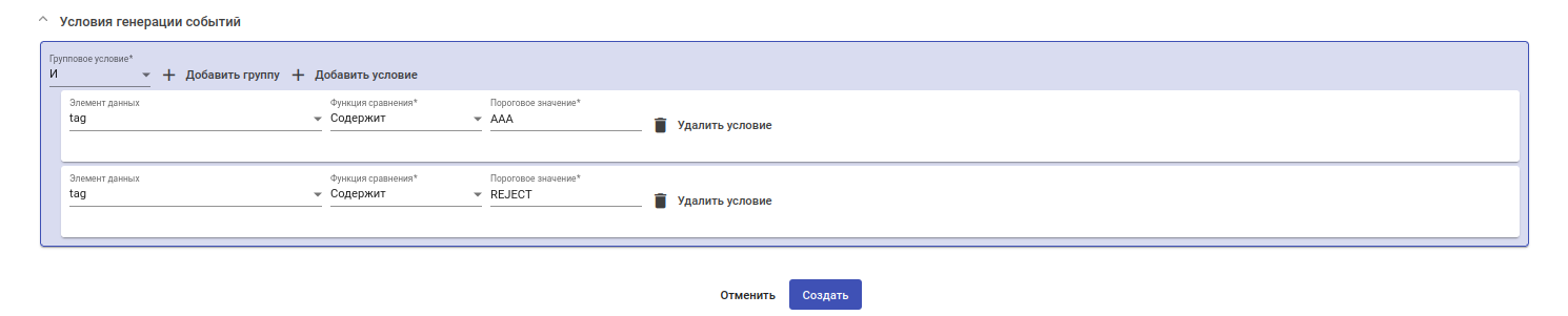 Создание правила генерации событий с несколькими условиями
