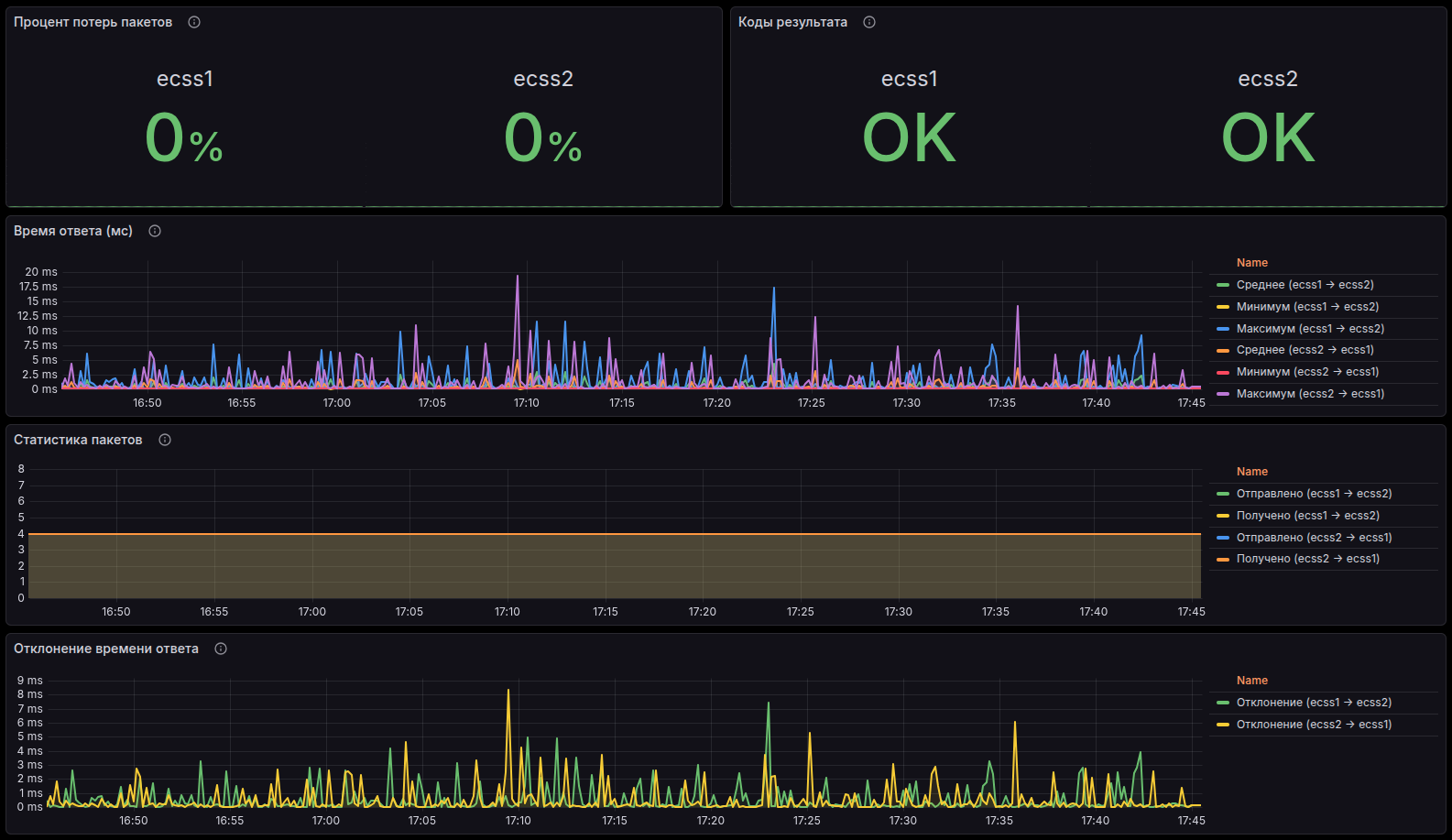 Рисунок 8. Мониторинг сети между хостами