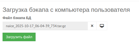После нажатия на кнопку начнется загрузка резервной копии БД NAICE.