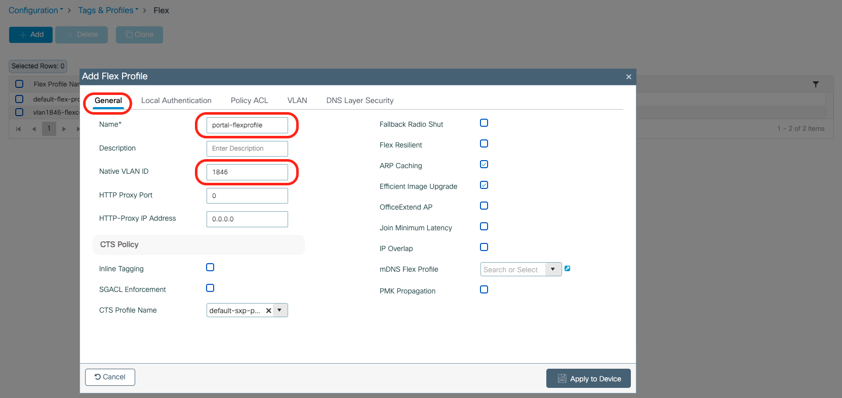 3) Необходимо проверить, что созданный в этой инструкции ACL-лист совпадает с рекомендациями инструкции в точности, также, что он назначен в профиле Flex Profile, а флажок Central Web Auth установлен: