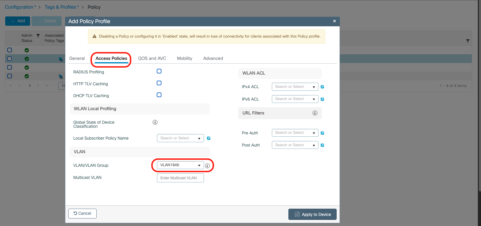 Необходимо перейти в раздел Configuration > Tags & Profiles > Policy и создать новый профиль кликнув +ADD:
