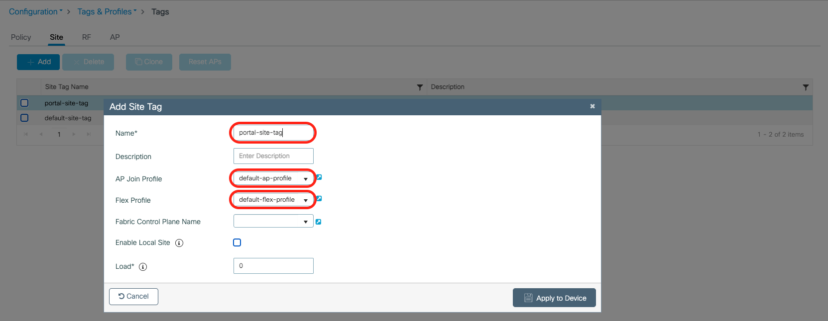 - Ввести имя профиля в поле Name (В примере используется имя portal-site-tag).