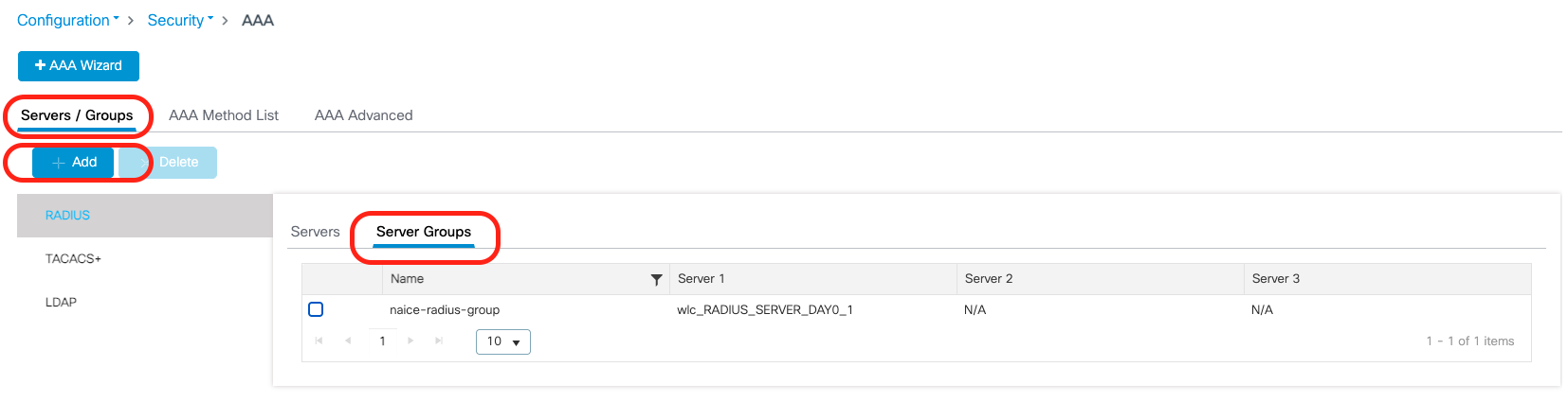 1) Открыть раздел Configuration > Security > AAA и создать новый Radius кликнув +ADD: