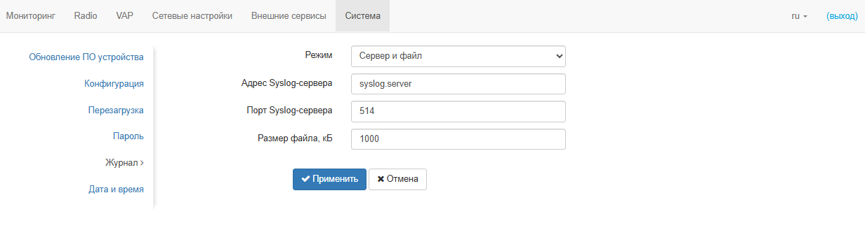 - поддержка Syslog;
