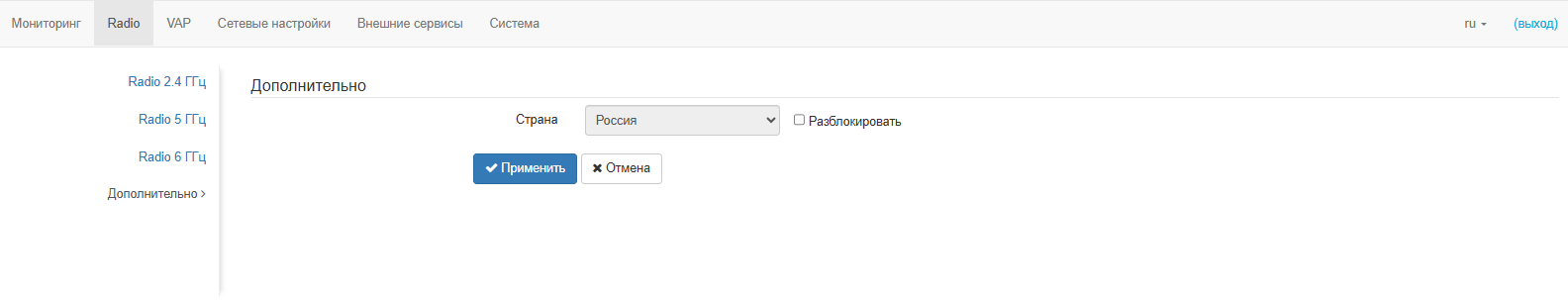 | Параметры беспроводного интерфейса | |